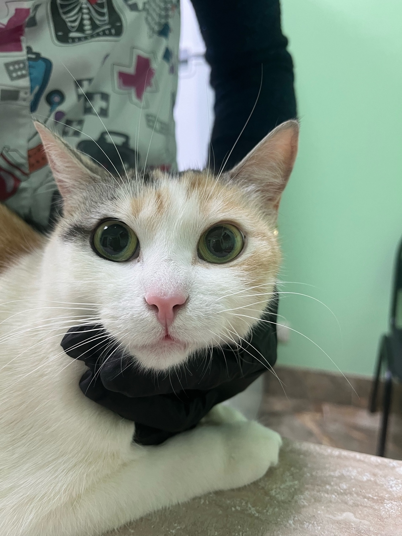Так получилось, что еще в молодом возрасте Ириска сломала таз, ей была проведена серьезная операция. Такие пациенты часто имеют проблемы с дефекацией, поэтому за ними требуется особенный уход. В виду того, что кошечка не могла самостоятельно опорожнить кишечник на протяжении целой недели, нами была проведена очистительная клизма.